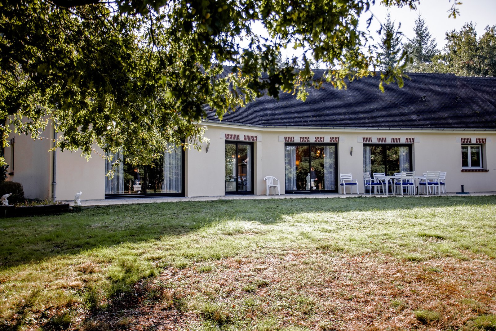 Une terrasse épouse les contours de la maison pour vous permettre déjeuner où bon vous semble.